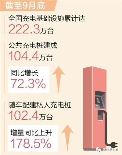 随着新能源汽车市场渗透率超过10%,在政策支持和多方共同努力下,截至9月底,我国随车配建私人充电桩已达102.4万台,增量同比上升178.5%。——222.3万台充电基础设施背后,是公共充电桩数量成倍增长。——222.3万台充电基础设施背后,是随车配建私人充电桩快速增长。